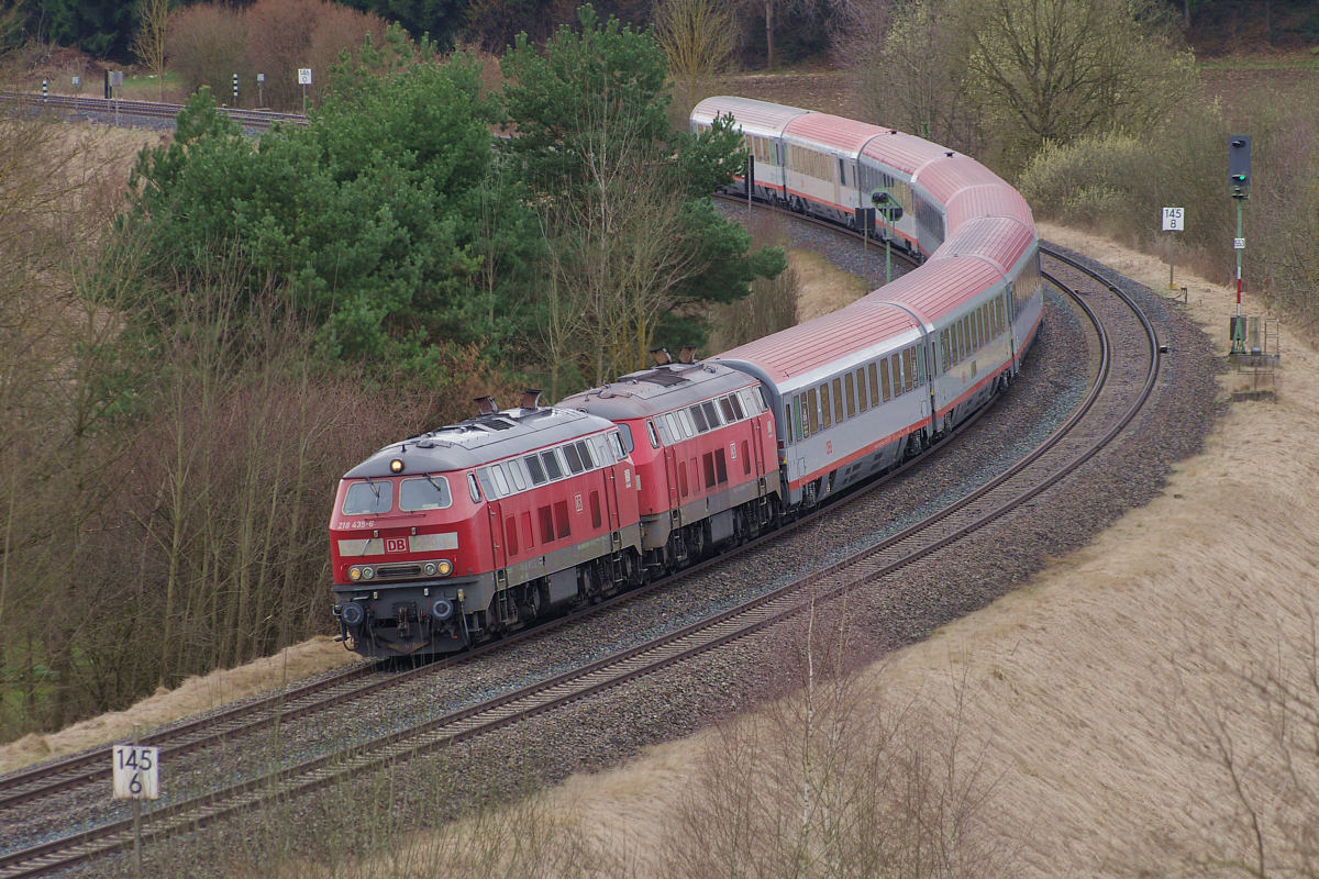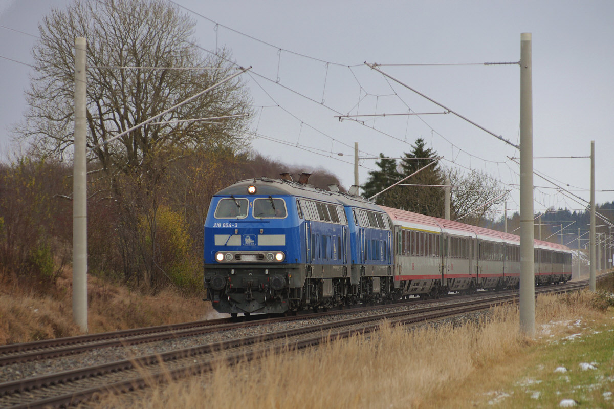 Hier sind 218-448 und 218-462 der Press am IC119 bei Gensenweiler (zwischen Biberach und Aulendorf).