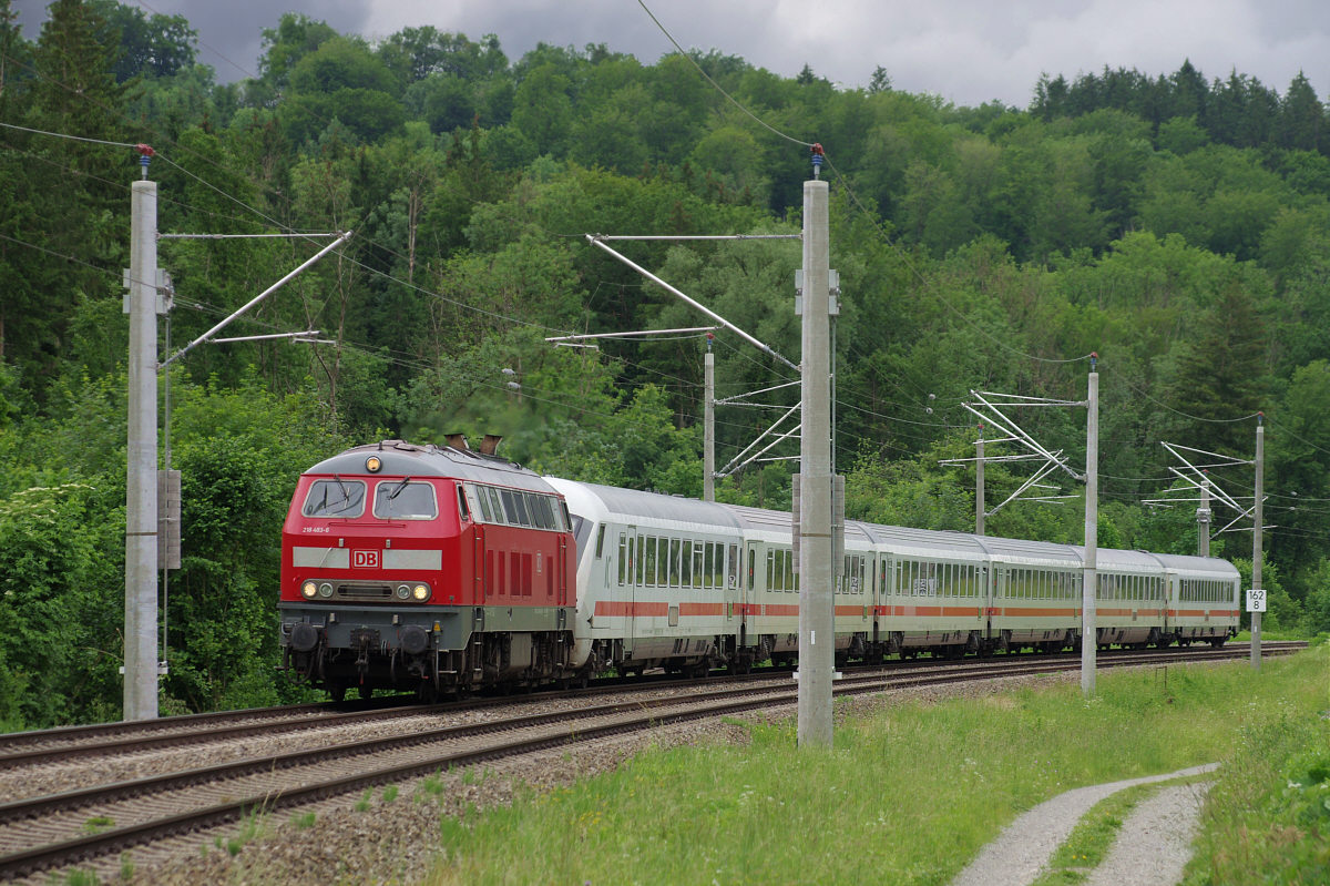 Ich beginne 2004, kurz nach meinem Wiedereinstieg in die Eisenbahnfotografie, diesmal digital. Damals bestand der Zug aus einem deutschen IC-Wagenstamm und fuhr im "Dieselloch" zwischen Ulm und Lindau mit Baureihe 234. Da konnte auch der Steuerwagen verwendet werden, das Umsetzen der Lok in Friedrichshafen, wo der Zug Kopf macht, entfiel.