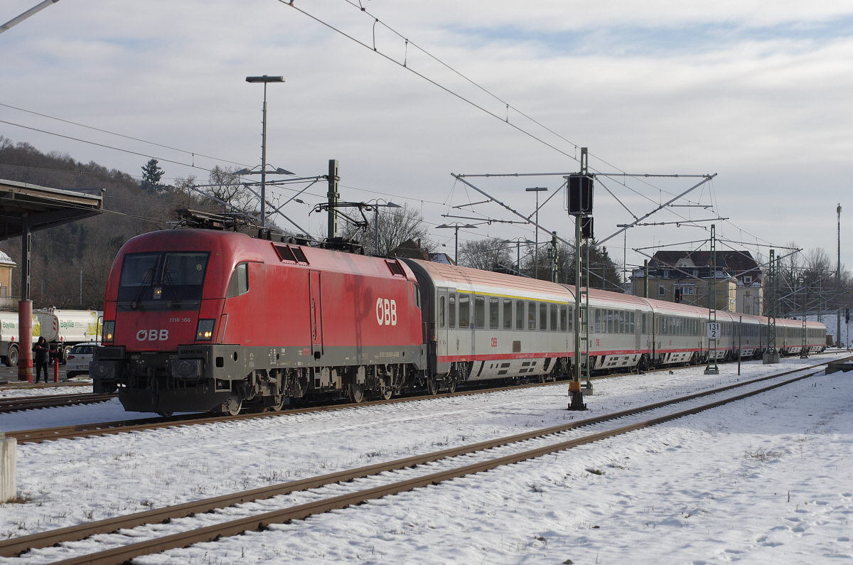 Ein Bild vom 12.12.2011 in Bad Schussenried, einer der ersten (wenn nicht der erste) IC 119 mit ÖBB-Wagen.