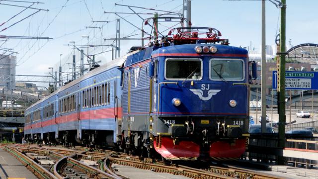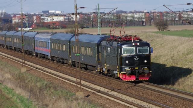 Alle 60 Rc5 (135 km/h) sind zu Rc6 (160 km/h) umgebaut. 2012 ist nur noch ein blauer Wagen verblieben. Im Hintergrund: Lund