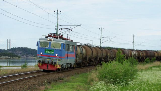 Einsätze der Rc1 vor Güterzügen waren in den letzten Betriebsjahren rar, Rc 1017 im Jahr 2008 vor einem Güterzug bei Stenungsund.