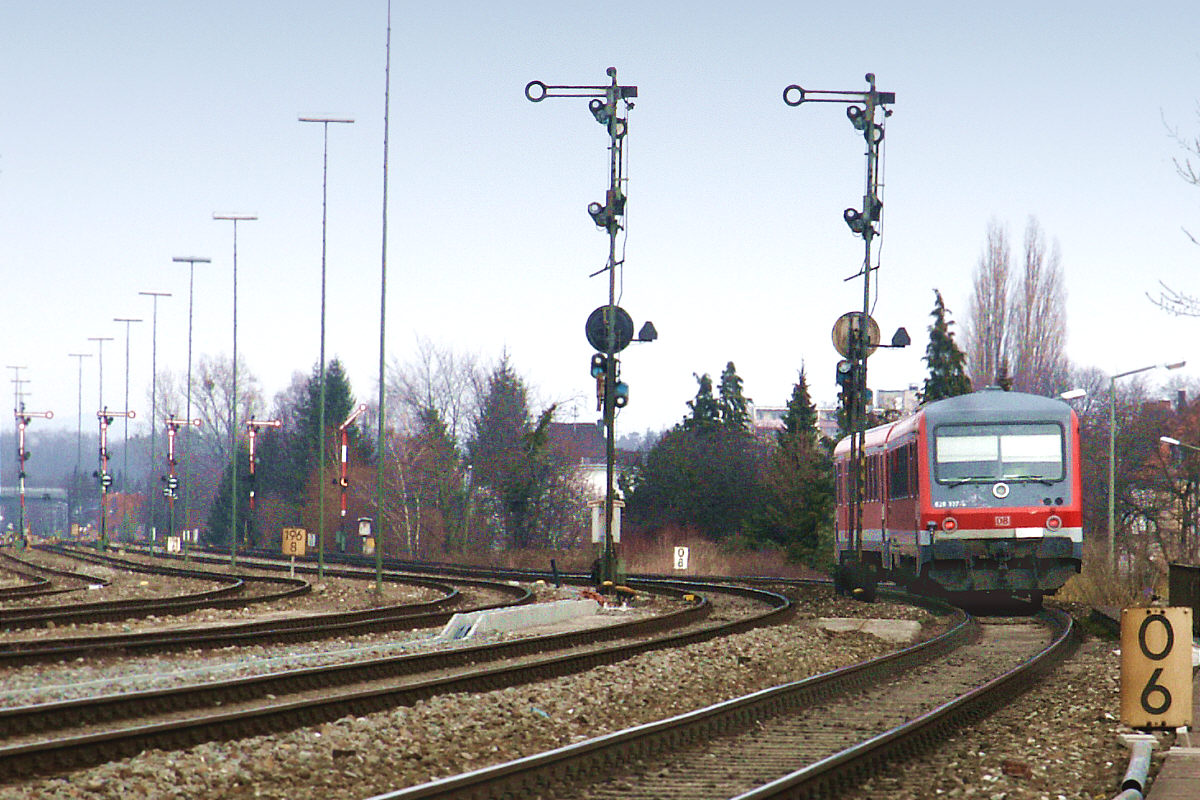 Im Frühjahr 2004 in Friedrichshafen - mit meiner ersten Digitalknipse mit immerhin 3,2 Megapixel Auflösung - eher ein Bild "Signale mit Triebzug".