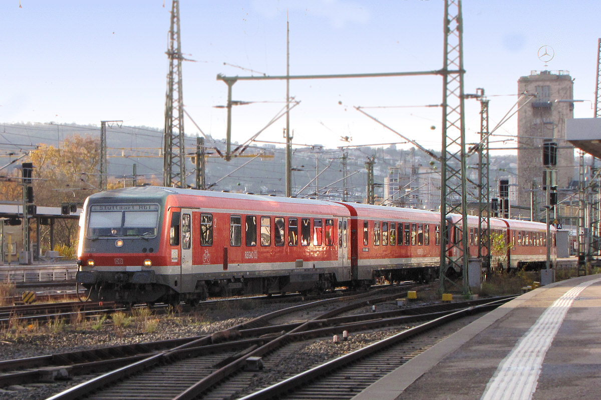 Mein bestes Erlebnis mit dem 628 hatte ich eines frühen morgens in Bad Schussenried, als statt einer 218 mit 4 Doppelstockwagen ein einzelner 628 als IRE nach Stuttgart daherkam. Irgendwie habe ich mich reingequetscht. In Ulm wurde noch ein zweiter 628 angehängt und so kamen wir irgendwann dann in Stuttgart HBF an. Ich hab mir noch die Zeit genommen, die Ausfahrt aus Stuttgart zu knipsen. Wäre sicher ein tolles Bild an der Geislinger Steige gewesen.