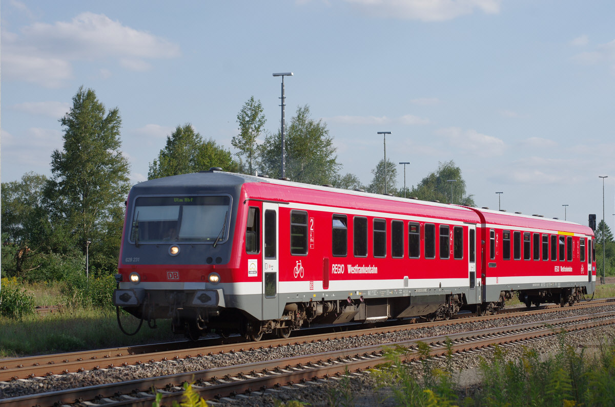 Gerne hat sich das Bw Ulm gepflegter Leihtriebwagen bedient, so wie 628-231 der Westfrankenbahn
