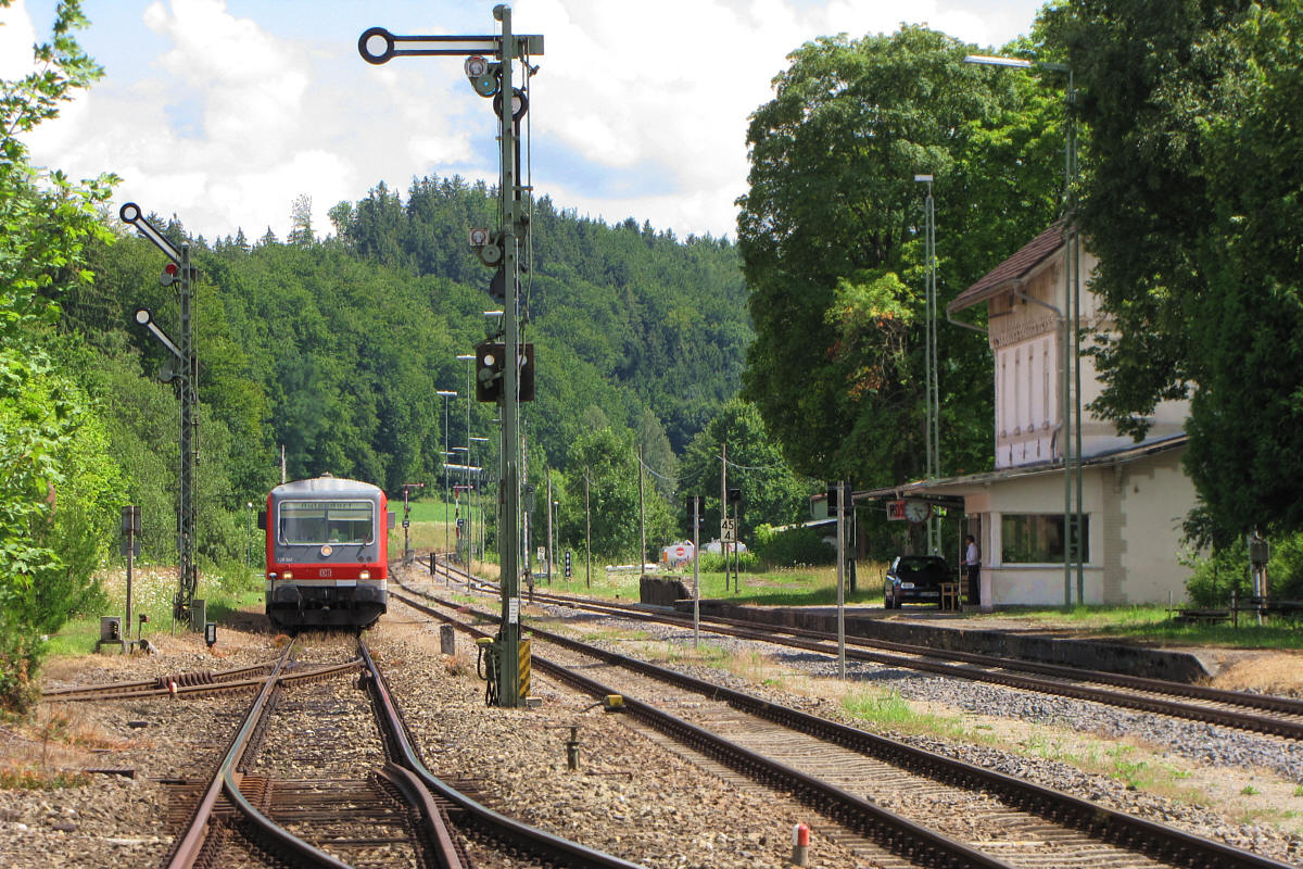 Wegen der Sperrung der Südbahn nördlich von Aulendorf führt der Weg einzelner Züge von Aulendorf nach Ulm über Herbertingen und das Donautal.