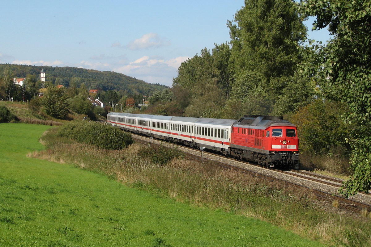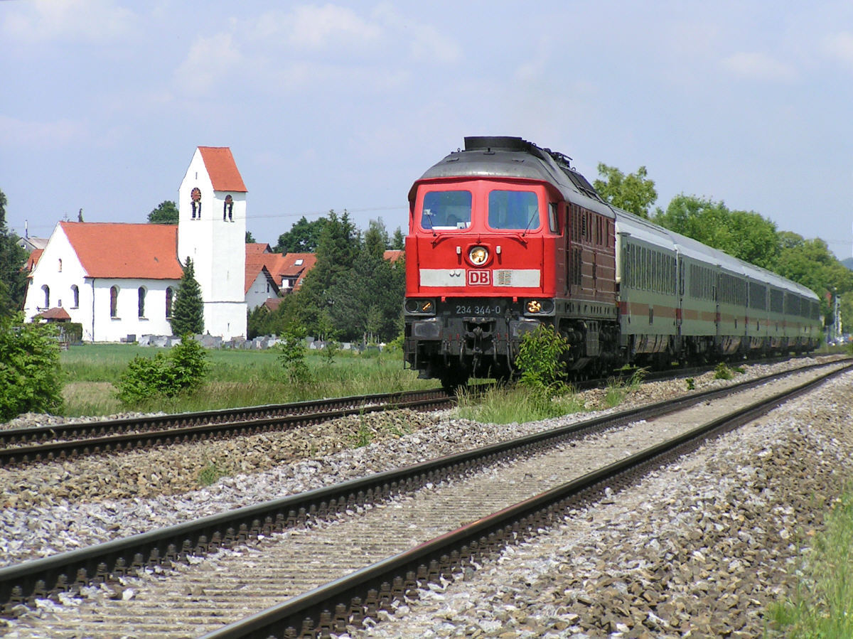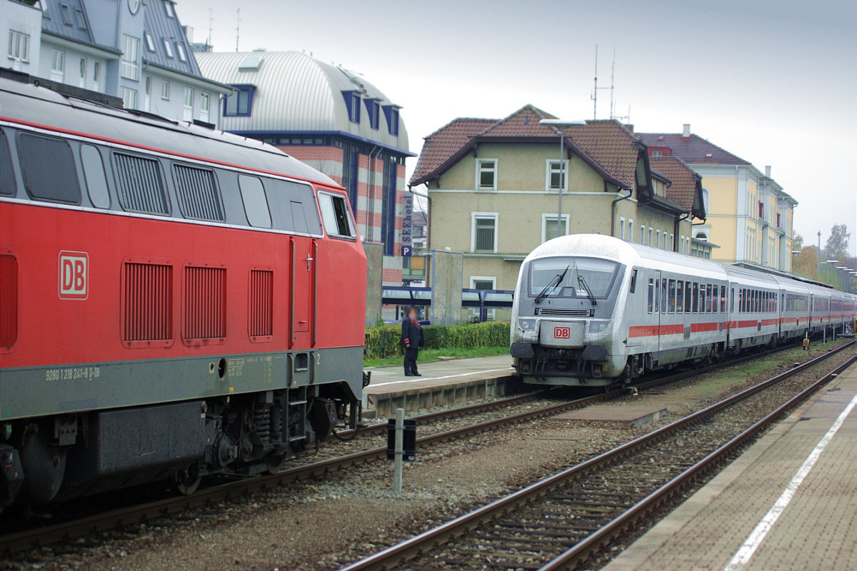 Ich beginne 2004, kurz nach meinem Wiedereinstieg in die Eisenbahnfotografie, diesmal digital. Damals bestand der Zug aus einem deutschen IC-Wagenstamm und fuhr im "Dieselloch" zwischen Ulm und Lindau mit Baureihe 234. Da konnte auch der Steuerwagen verwendet werden, das Umsetzen der Lok in Friedrichshafen, wo der Zug Kopf macht, entfiel.